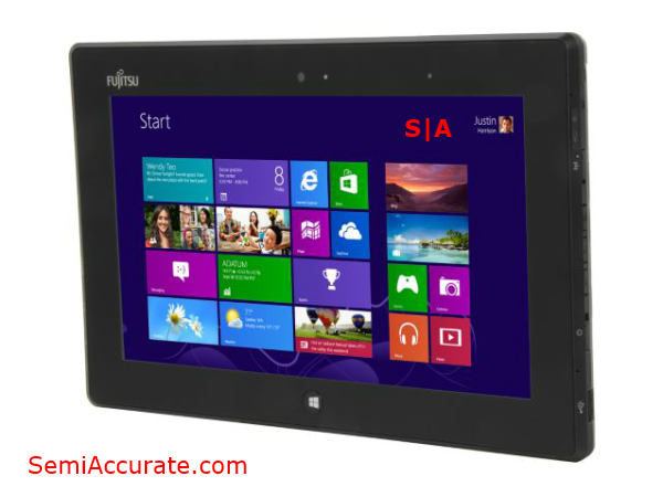 Let’s look at another example, Fujitsu’s Q572. This was a business oriented design that was AMD’s only major tablet design win in 2012. It had a 720p IPS panel, was a bit on the bulky side, and offered a ton of features aimed at business users. It wasn’t a bad tablet per say, but it wasn’t really anything special either. Right now it’s listed on Newegg for a mere $780, and has only one review from a verified owner complaining about dead pixels on the screen.