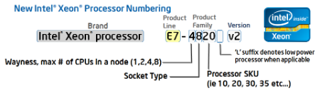 The cubicle dwellers at Intel (INTC) HQ have hatched a new scheme that attempts to cram even more information into a single model number. According to an Intel blog post, the new scheme breaks down as follows: [ Using the following model number as an example: Intel Xeon E7-4820L v2 ]