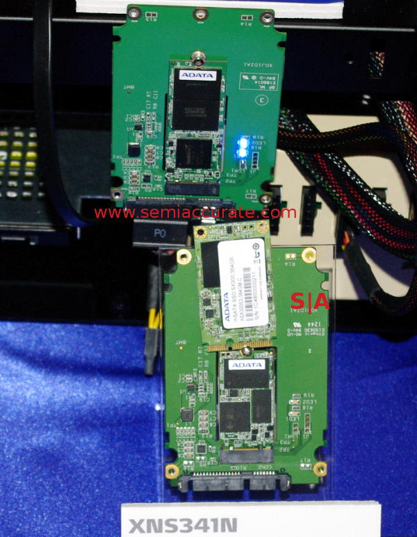 This may seem far too complex for a rational spec, but if you consider it is aimed at Ultrabooks, stupidity and needless complexity is de rigueur. This is nothing that Adata devised, NGFF is a SATA-IO spec, they just make devices that customers need. In that regard, the bottom device called the XNS341N is an M.2 2242 interface NGFF card with a JMicron JMF667 controller. It comes in 24, 32, and 64GB sizes so it is obviously aimed at the boot cache market. The top drive is the XNS360E, a M.2 2260 interface part with an LSI SF-2281 controller. It comes in 64-512GB capacities and is a true mSATA SSD replacement. This is the future, get used to it.