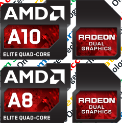 The next keyword, Quad-core, is rather self-explanatory. So now you know A10 and A8 Richland, A6 and A4 Kabini will have 4 CPU cores. Then what about Temash with the smaller quad-core logo? The lineup of logos look like this: