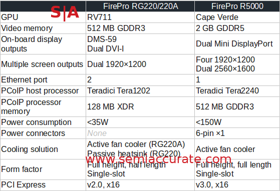 AMD will release the new FirePro R5000 remote graphics soon as an update to their remote graphics offerings from the old RV711-based FirePro RG220 graphics card.