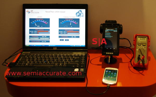 You could pick any four of them that you wanted to tune in, and the hardware did so. This may not sound all that dramatic until you consider this used to be the work of many disparate bespoke chips. The ST-Ericsson booth had lots of local networks set up, so you could see that it worked, and the signals were decoded cleanly all with the chip overlaid on the demo. The signal decode is shown on the right with the four graphs, if you understand what they represent, you can see that it works. If you don’t, well just pretend, point to the right side, and nod if someone asks, we’ll back you up.S|A