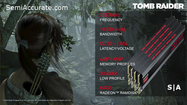 By far the most interesting thing we learned from AMD’s presentation was that all of its memory products, including the RAMDisk software, are being produced by Dataram. What’s even more interesting is that rather than AMD rebadging Dataram’s products for sale, Dataram has licensed AMD’s Radeon brand. This would lead us to believe that as part of the licensing deal AMD is taking care of the product marketing and taking a small cut from every sale of Radeon branded RAM that Dataram sells.