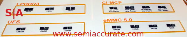 As you can see the options range from 8Gb of LPDDR2 plus 8GB of eMMC to 16Gb of LPDDR2 with 32GB of eMMC. New to the market is an 8Gb LPDDR3 with 8GB of eMMC package but you can pretty well assume this is just the tip of the LPDDR3 iceberg. Given the density differences between LPDDR3 and LPDDR2 it shouldn’t be long before the DRAM side takes off in capacity, Google willing. The flash side is just waiting the 3D NAND to hit volume production for much bigger numbers.