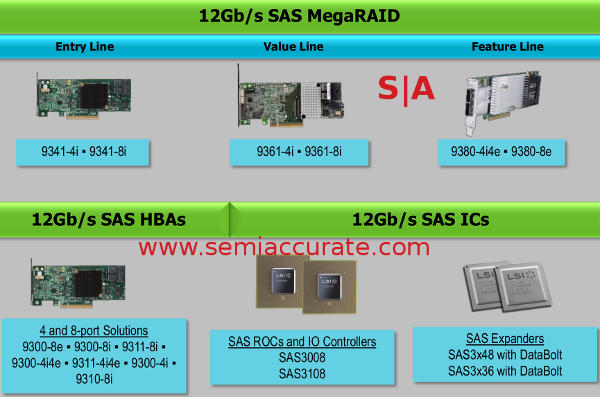 LSI is finally launching all those SAS12 goodies that they have been talking about for the last year, ROCs, IOC, HBAs, expanders, and RAID cards. While there isn’t much new news here, the goodies are finally launched.
