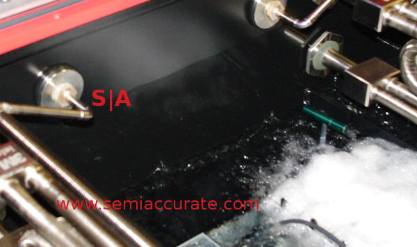 How much heat can this demo rack remove? The system shown to SemiAccurate was dissipating 12KW at the time and it is only about half populated. SGI, 3M, and Intel claim that it is rated at 80KW or about 20x what the current 3M data center racks are specced for. 3M is claiming about 25KW heat removal per liter of Novec but that is only for these demo systems.