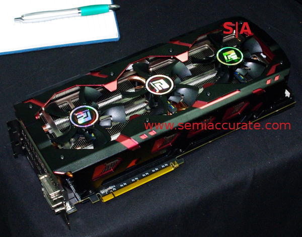 One little surprise SemiAccurate ran into at Computex was the new Hawaii based Powercolor Devil 13 R9 295X2 card. This beast is, well, a real beast with a big surprise lurking near the bottom.