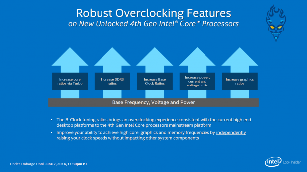 By far my personal favorite chip of this launch cycle is Intel’s Pentium Anniversary Edition. It’s a dual core Pentium branded and heavily binned Haswell chip should retail for less than $100 and offer an unlocked clock multiplier. Long gone are the days when you could buy a cheap Intel CPU and then clock it to the moon to get i7-like performance levels with out the cost. And while Intel has disabled so much of this chip that it will likely never challenge it’s i7 or even i5 chips when overclocked, it still looks to be an excellent proposition for budget gaming builds where single core performance per dollar is more important than any other metric.