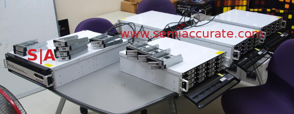 As you can see from the conference room taken over by this test of their Computex demo, it does work. The only problem we can see with the W1600 plus 4x D1600 setup is that it runs Windows storage server, something most sane people wouldn’t trust a grocery list to much less 4.8PB of data. More money for less security and uptime is hardly a good trade, we sorely wish Thecus stuck to Linux here like the rest of their devices.
