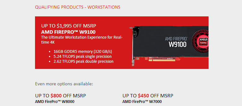 To take advantage of this promotion you have to register and get a code from AMD then buy a FirePro GPU from an approved retailer and the claim your rebate from AMD. Again this promoting is good for up to a 50 percent rebate on your first purchase of a high-end FirePro GPU.