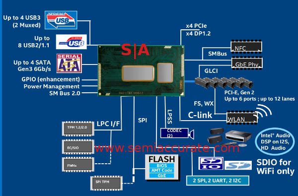 This is nothing more than cutting AMD and Nvidia out of the notebook market while meeting the letter of the law just like we said. 4x PCIe lanes is barely enough to run a GPU off of if you don’t game, but the Intel GPU is enough for that too, what a coincidence, eh? Better yet if you want NVMe/SATAe drives, guess what you need to use? Yup, storage or graphics, just like SemiAccurate said two years ago. Evil but technically legal.
