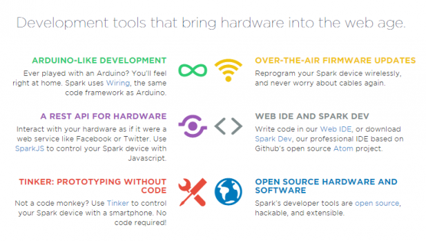 Spark prides itself on providing all types of users with the tools they need to develop with their kits. From the Tinker phone app that allows you to read the real-time voltage levels of the GPIO pins and set temporary parameters for them to the fully open source libraries, development tools, and an Atom project-based IDE that Spark supplies with its development boards the software ecosystem is the biggest value add of Electron over competing solutions. Even more interestingly the Electron is supported by Spark’s Spark Cloud API which is a REST-style API users can interact with the Electron like they would with Twitter or Facebook’s API.