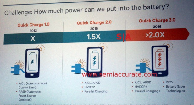 Qualcomm introduced Quickcharge 3.0 last week and went into detail about what it actually does. If you have ever wondered what Quickcharge 1-3 do under the hood, SemiAccurate can help.