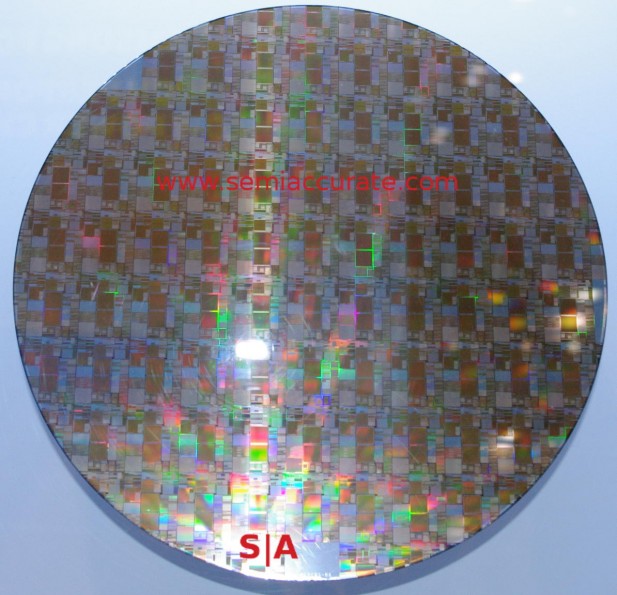 SemiAccurate spotted a Samsung 10nm wafer at Techcon 2015, the only 10nm part publicly displayed. The silicon is only test chips so don’t read too much into it, but we thought you would like to see it anyway. Enjoy.S|A
