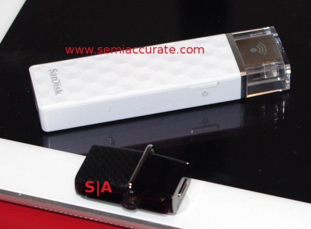 The last one seems to be a bit more than evolutionary but the functions remain the same, it is the Sandisk Connect Wireless Stick. This is the second generation of the line, the idea is to put a battery and a Wi-Fi radio into a flash stick so you can stream multiple movies from it wirelessly. The first generation product didn’t have any memory internally, just a microSD slot so it was very versatile. It is a great idea, at least in theory, but the first iteration was a shattering disappointment.