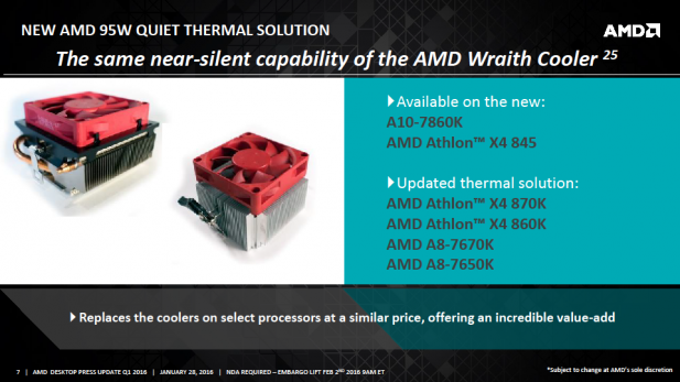For those considering buying in to a new FX or A-Series PC on the basis of cost then AMD has good news for you too. It turns out, and I know this may seem hard to believe, that AMD actually reads the product reviews that you leave on your Amazon and Newegg purchases. Based on a survey of those reviews they came to the conclusion that they need to improve their stock cooling solutions and things turned out pretty well as Charlie detailed in his piece on AMD’s Wraith cooler.