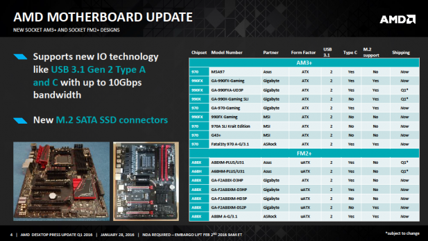 Since CES AMD and its partners have been busy rolling out new motherboards with the 990FX, 970, A88X, and A68H chipsets as a kind of greatest-hits-style compilation album. Why would you want to purchase one of these motherboard? Well because you think features like USB 3.1 ports, USB Type C ports, M.2 slots, and NVMe support are worth upgrading for. We all know that socket AM4 is coming soon and coming before the end of the year. I see basically two reasons for buying into AMD’s existing desktop ecosystem at this point in time: cost and replacing dead hardware.