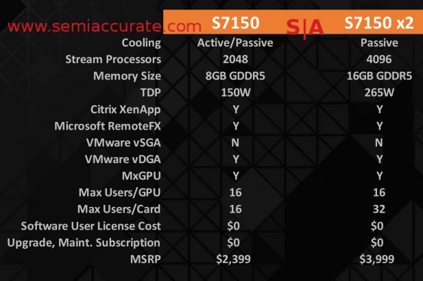 Last week AMD launched a new FirePro GPU aimed at VDI, say hi to the S7150 line. A new mid-range professional GPU isn’t really news but SemiAccurate thinks the hardware virtualization it offers is.