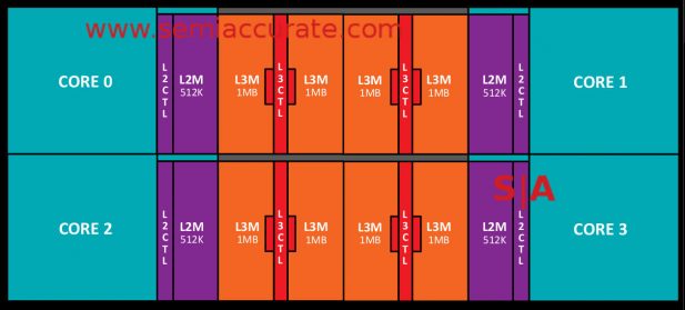 As you can see from the logo, there are two new letters and it is now in color. While we prefer the old black and white logo, the new one is a lot better than most, SemiAccurate almost likes it. So what are you getting, other than the spiffy logo? Effectively a Zepplin so 8-cores, 16-threads, 3.4+GHz, and 20MB of cache are the official bullet points. The unofficial specs are 512KB of L2 per core and 2x 8MB of L3 shared across groups of four cores per block. There are four slices per 8MB block that are picked by low-order address interleaving with the same average latency per core Each Ryzen has 32 PCIe3 lanes, 8 SATA/NVMe lanes, and 4x 10GbE with the caveat ‘up to’ likely because some of the phys and pins are shared. There are also two channels of DDR4 per socket.