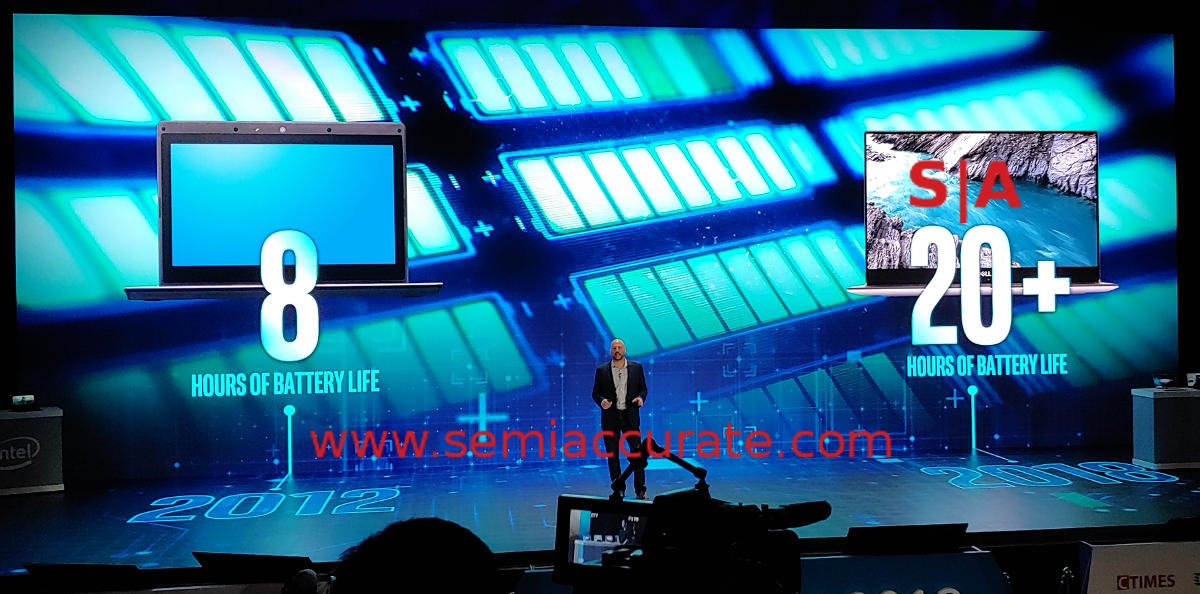 Last up we have another of Intel’s fact-averse headline grabbing attempt that comes back to bite them. Intel claims Their upcoming PCs will have 20+ hours of battery life, up from 8+ hours in 2012. That’s great right? Sure it is, but again Intel forgot something critical, Qualcomm based PCs have been on the market for ~6 months and got 24+ hours of battery life. And the day before they announced a 25+ hours of battery life PC.