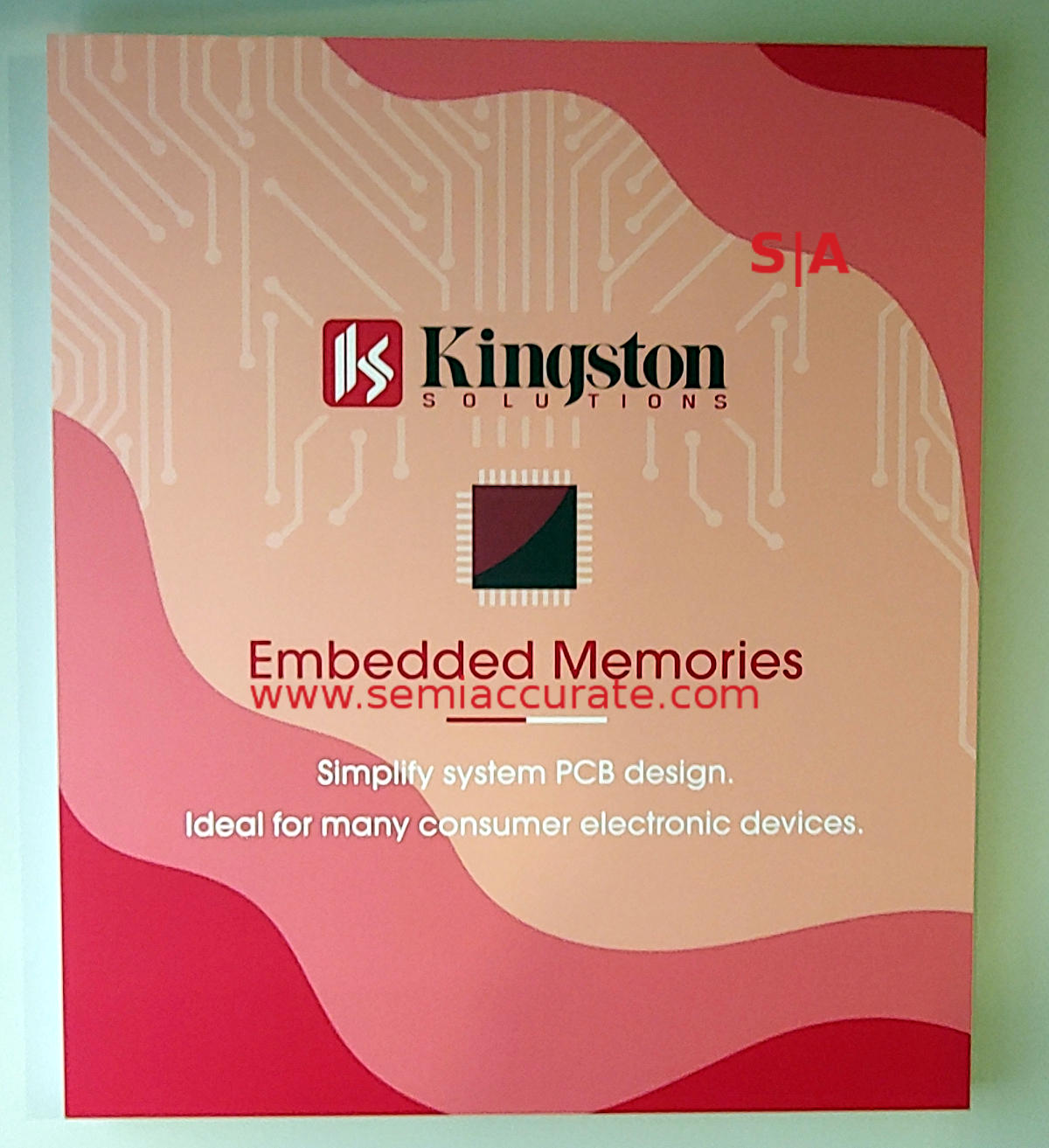 The big news is that Kingston now has a branding structure for embedded memories like eMMC. It is under the Kingston Solutions brand and has a logo and likely a co-branding fund/strategy. Why is this important? Of the 10+ devices you probably own that have embedded memories and storage, can you name the maker of one of them? Kingston sees this as an opportunity and if it works, others will likely jump in as well. Whether this is the start of a trend or a curious experiment is yet to be seen, but it is interesting.