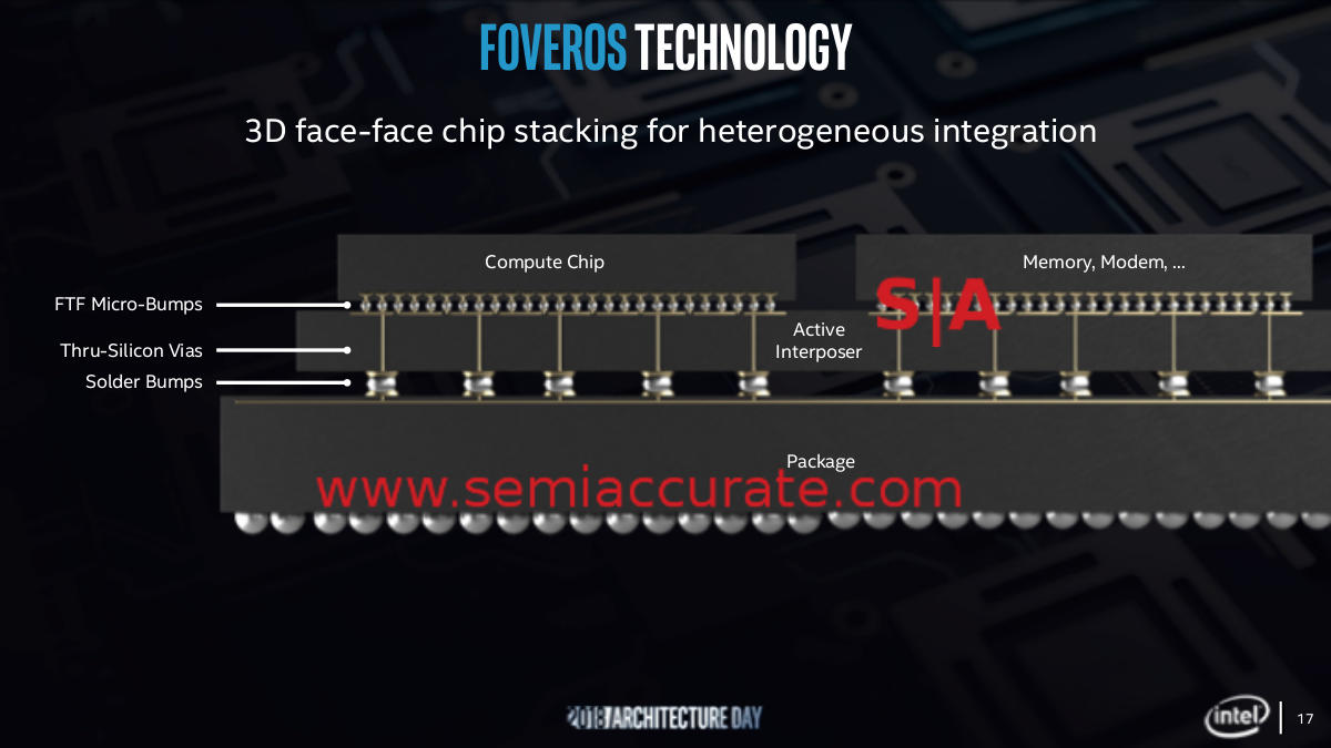 The biggest of these problems is power distribution, hot dies obviously consume more energy to do their job so how do you get it to the top die? The obvious answers take a huge amount of die area so novel approaches are needed. That said, Lakefield is a product and will presumably be shipping so you can assume Intel solved these problems.