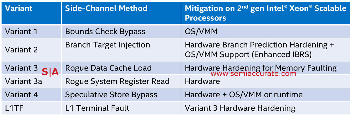 Until there are architectures released who’s optimizations are not susceptible to such side channel hacks, a fix will mean lower performance to one degree or other. (Note: This is not a stab at Intel, it is true across every architecture, x86 or otherwise.) Hardware side channel exploit fixes are the first new feature in Cascade Lake that was not planned for Purley, mainly because these exploits had not been discovered when Purley was released.