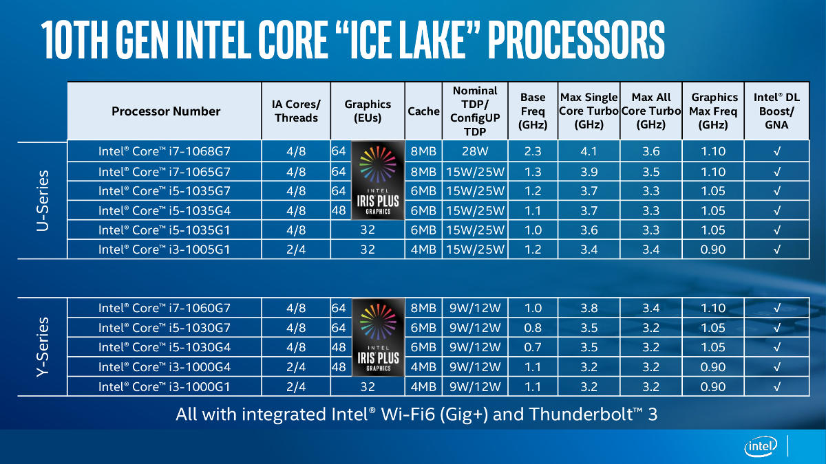 Lets start out with the easy stuff, we told you about the architecture months ago along with some of the SKUs that Intel flatly refused to release. These replace the faster 8th/9th generation Whiskey/Amber Lake CPUs, or more precisely supplement them because despite the rhetoric, Intel still can’t make 10nm CPUs in volume. The architecture of the Ice Lake CPUs, code named Sunny Cove, is pretty good. The clocks and availability say in no uncertain terms it can’t be manufactured in volume much less at a profit.
