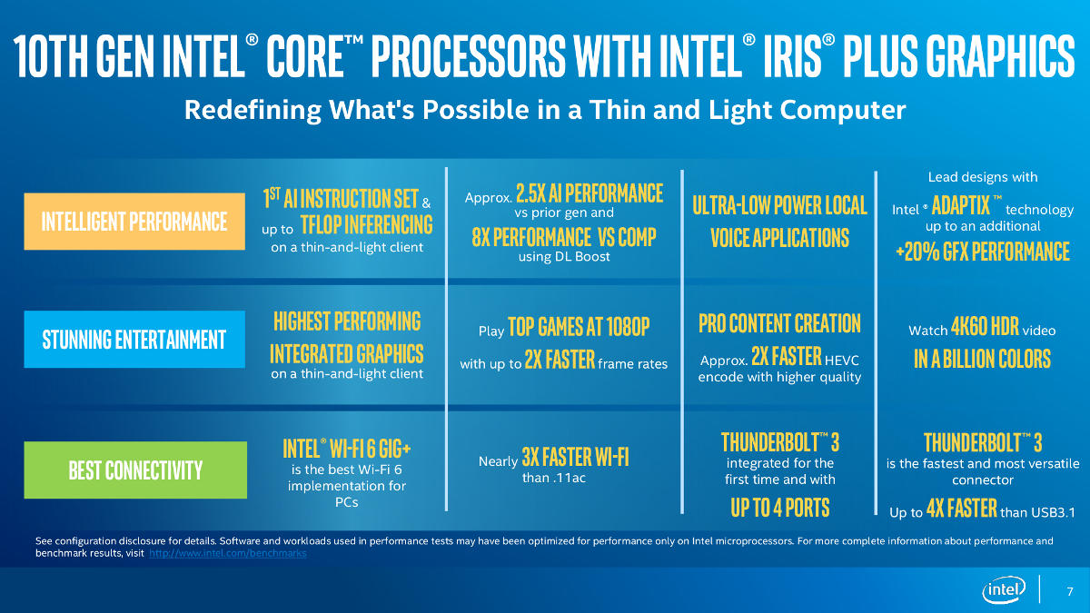 Now lets get to the interesting parts, performance. We would like to thank the briefing gods at Intel for their mercy in not forcing a few dozen awful slides about a risible scenario that some subculture that no one has heard of before uses Ice Lake to make their life 713% better. Similarly there was a lack of bar graphs, thank you again, which showed how some cherry-picked software was much faster now while hoping you would infer that it meant all software was similarly juiced. Instead you got one slide that has some infographic level claims.