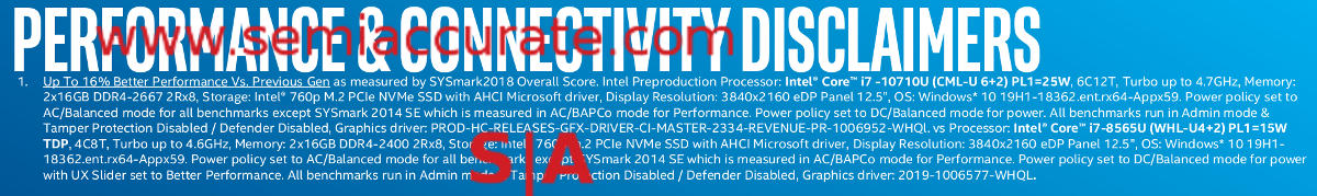 Yup that 16% max increase when going from a 6C i7-10710U to a 4C i7-8565U was bad. The fact that they compared a 25W 10710U to a 15W 8565U and buried that fact in the fine print is unacceptable. We once again call for the idiots responsible to be fired, not that Intel will do anything, it seems this sort of behavior has become acceptable at big blue. It still isn’t right.