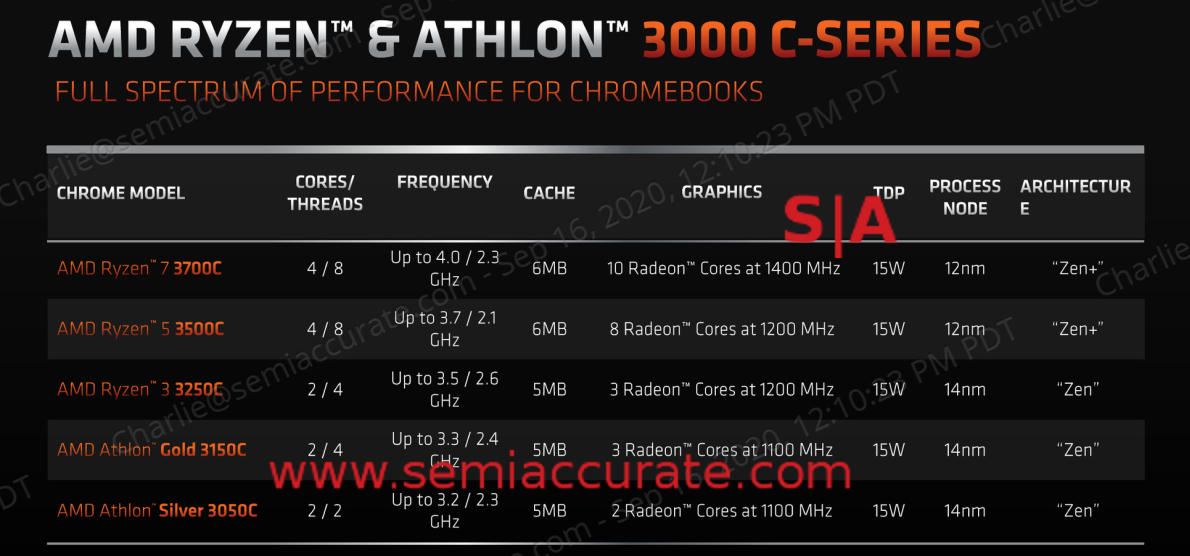Today AMD is launching five new Chromebook CPUs and their C-series line of SoCs, but ‘new’ is a bit of a stretch. That said SemiAccurate thinks this new line of old chips is an interesting twist of marketing genius. Or evil. It kind of depends.