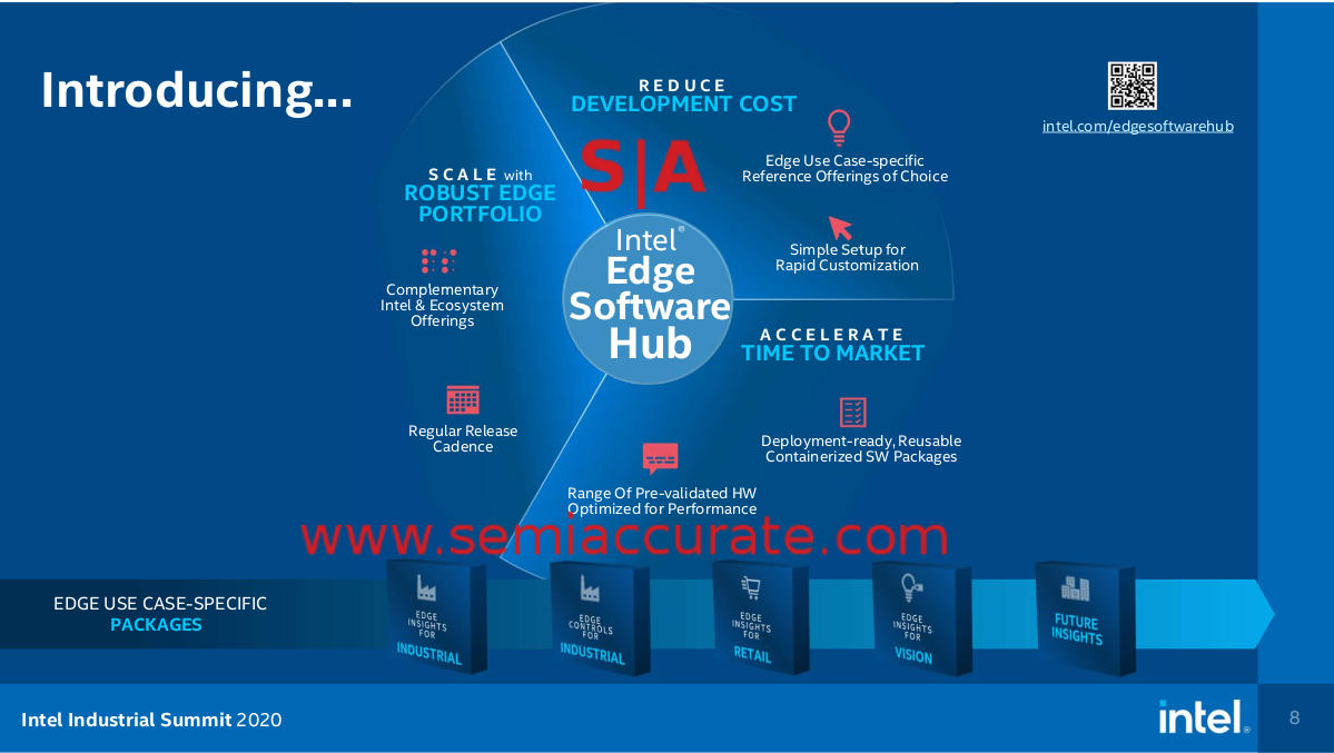 SemiAccurate has told you about OneAPI and that is just the start of the tools for embedded user. Throw in OpenVINO and Open Visual Cloud to meet the AI and vision requirements and you have the start of something interesting. Put it all together under a single umbrella and you have the Intel Edge Software Hub with all the helping hands, tutorials, and sample code you need to do your embedded work. OK, not everything but Intel is usually quite good at this part, their tools tend to be top notch and the Edge Software Hub will probably be right up there. Since most of it is based on existing tools like OneAPI, there should be few teething problems.