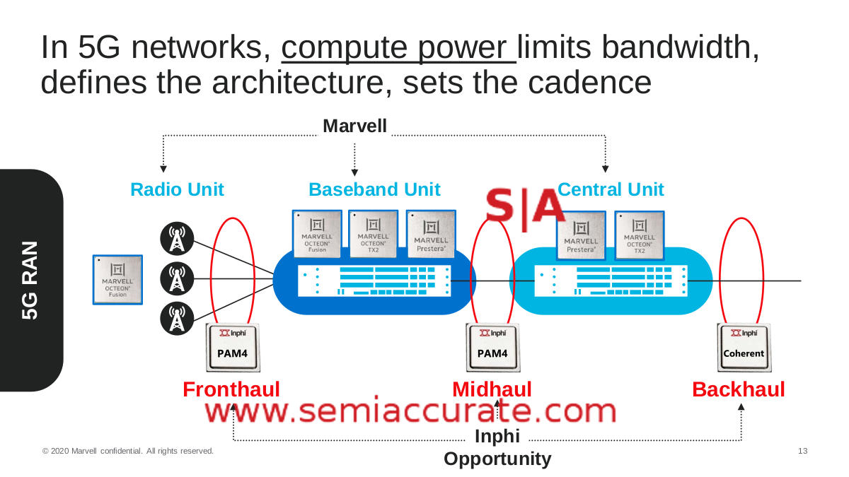 Marvell, through the assets it got when it purchased Cavium, is a big player in the 5G infrastructure space. The chips may carry a name that rhymes with Tamsung but that is the idea with semi-custom, no public glory but lots of solid revenue. Marvell is positioned to supply almost all the pieces of the 5G infrastructure silicon market now but have little to nothing on the interconnect side of the game.