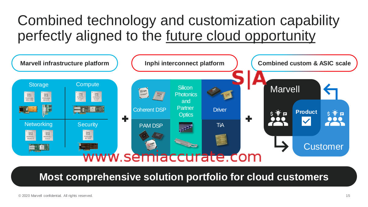 Marvell has most of the important IP for a chip or SoC itself but not much for the stuff that connects those boxes up. Since 100Gbps and higher Ethernet is going to be optical, this is a growth market. More importantly in the near future, Ethernet is increasingly becoming an on-chip feature, Habana and Google are both putting it on their latest AI chips. Doing this electrically is fine for now but as speeds climb, it will be going optical.
