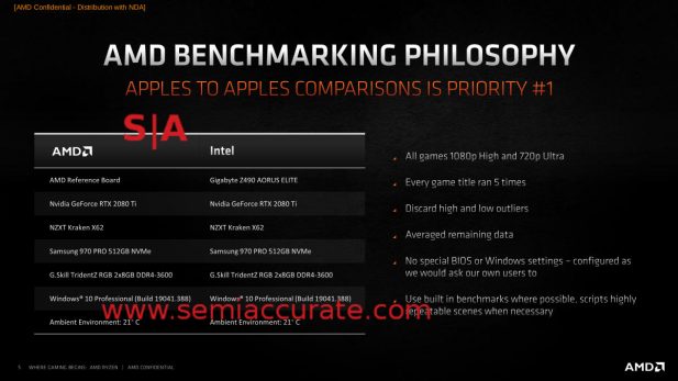 Another good thing is AMD finally did some solid disclosure on their benchmarking setup. If this continues, SemiAccurate will finally be able to both accept the numbers they present and stop bitching. See, it wasn’t that hard to do the right thing, and hopefully the GPU side will get on the train soon too. Whatever the outcome, recreatable numbers are mandatory for trust and the Zen 3 decks show both sides can do right and still make the claims they need to.