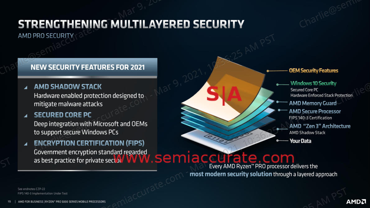 Overall the new Ryzen 5000 Pro Mobile line has all the goodness of the non-Pro line plus a few security, manageability, and product stability updates. Nothing amazing just building on a solid foundation of consumer parts and prior generations. Since it is socket compatible with Ryzen 4000 we should be seeing a large number of designs in short order. Then again we said that about the non-Pro 5000 and while those technically exist, SemiAccurate has never seen one for sale on the open market.