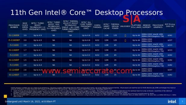 That brings us to what exactly Intel is launching today, and there are three pages of CPUs all stemming from a single 14nm die. We asked what process variant Intel was on and once again they voluntarily shredded their credibility by claiming it was 14nm and only 14nm. Why do they keep doing this? We aren’t joking when we say there is no up side, it will only hurt the company reputation. If you wonder why we don’t write good things about Intel more often, it is interactions like this that preclude the option. We will skip the renamed/tarted up 10th gen parts slide for brevity, and yes the formatting is munged, it was give to us that way, sorry.