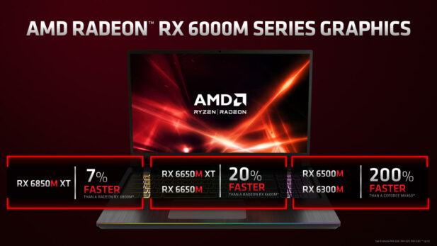 Slightly more interesting is the new 6000M line because they are a shrink to the TSMC 6nm process, at least on the low end. The high end 6850M XT is a 335mm^2 die while the 6650M/M XT are the (likely) same 237mm^2 die as the -S line, both 7nm. The lowest end parts, the 6500M and 6300M are both TSMC 6nm and weigh in at 107mm^2.
