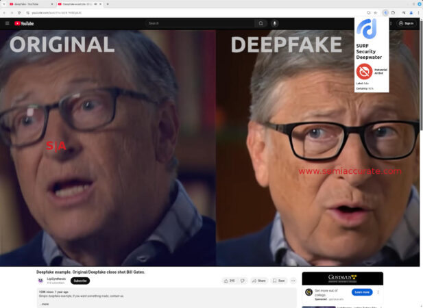Surf Security has come out with a good idea, a browser with deepfake audio detection built in. SemiAccurate tested their Deepwater AI detector and, well, it seems to work.