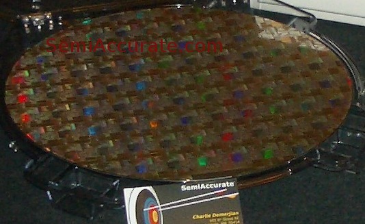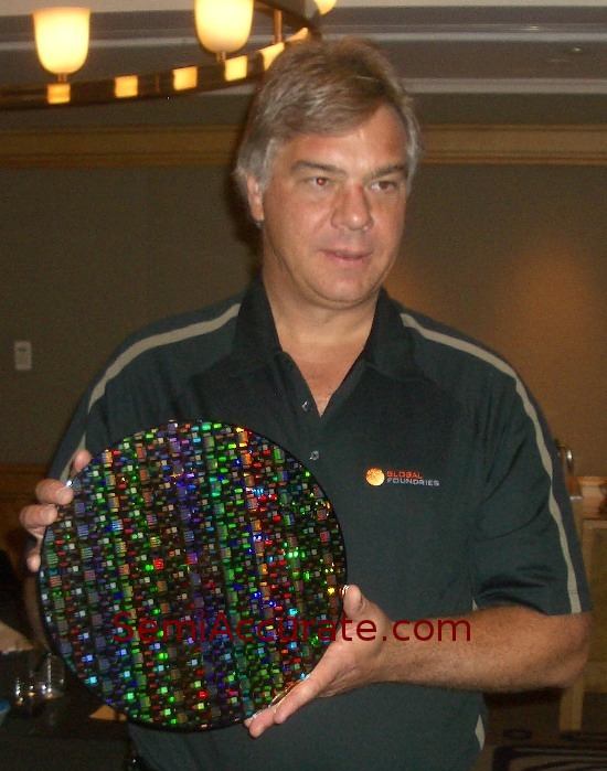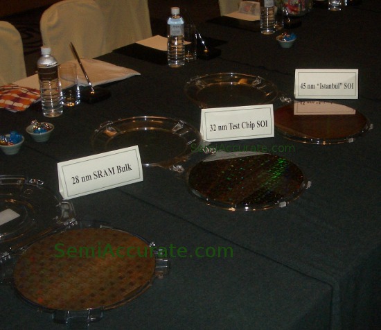 GLOBAL FOUNDRIES WAS showing off the goodies today, with three wafers of unreleased parts. Not only did they have the tried and true 45nm SOI process, but 32nm SOI and the long awaited 28nm bulk as well.