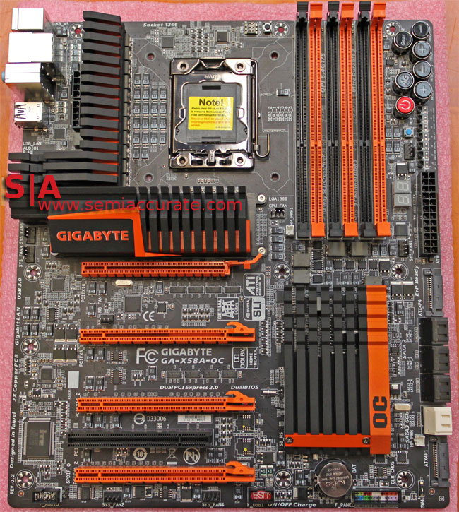 WE GOT SOME hands on time with Gigabyte’s new X58A-OC motherboard that the company has designed specifically for overclockers and most of the features that go beyond the normal motherboard bits have been developed by Gigabyte’s in-house overclocker HiCookie. Now that said, this is actually a fairly affordable board, at least considering the high-end components used and what is likely to be a limited run of boards, although Gigabyte wouldn’t tell us how many they’ll be making in the first batch.