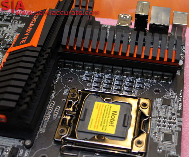 We already mentioned most of the key features in our piece about the board last week, but we were told about a few extra features that we weren’t aware of. For starters the 12-phase PWM design is meant to be as good as Gigabyte’s previous 24-phase design thanks to the custom made 50A MOS chips and chokes, as this board can actually deliver as much, if not more power than Gigabyte’s previous designs.