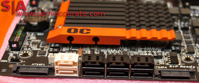 Besides the SATA style power connectors on the front of the board that provides extra power to the PCI Express slots when multiple graphics cards are being used, if you look closely on the left hand side, you’ll see a small switch labeled SW4. This is the manual BIOS selection switch, although this has to be set before the system is powered on. The board supports two independent BIOS versions to be installed thanks to this, again a feature that overclockers will appreciate.