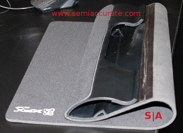 The other thing that falls under the category of ‘damn that is useful’ is the Arcpad mousepad. Arcpad is a pad that clamps on the edge of the table to provide wrist wrests and to cushion sharp edges that dig in after a long gaming session. Given the tables in the CeBIT press office, I could use one now. They roll up into a tube, weight nothing, and will cost about $39.99 when they go on sale soon. This is the first mousepad in a long time that I think I would buy.