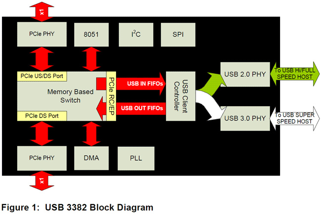 Another advantage on offer here is that a wide range of ICs should work more or less out of the box with PLX’s controllers which will reduce product development time which in turn leads to lower cost. There are of course some limitations, mostly power related but at least in that case an external power brick would easily solve the problem. PLX has also included a degree of intelligence in it new peripheral controllers thanks to an integrated 8051 controller which allows the controllers to “fake” the device type to the host system. This again has been done to reduce the time it takes to develop certain solutions as the controllers will appear as standard devices of a certain type to the OS and as such no additional drivers are needed.