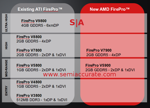 AMD (NYSE:AMD) is finally bringing their FirePro professional line into the VLIW4 era with two new cards, the V7900 and the V5900. Both are based on the ‘Cayman’ ASIC that powers the current HD69xx line of graphics cards, but the two cards end up quite different.
