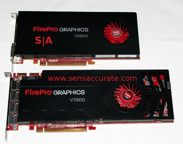 The new cards are both mid-range parts, the previous Evergreen based FirePro series ran from the V3800 line to V9800, the new ones add 100 to the mid range V7800 and V5900 GPUs. So far so ordinary. The interesting bit is that they both are Cayman/VLIW4 chips, not the older 4+1 shader setup. For gaming, this change was a wash, but for ‘professional’ use, the story changes radically.