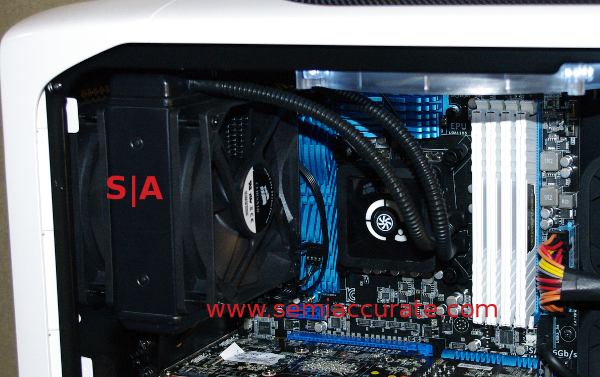 Last up is a new line of water coolers, the H60, H80, and H100. These three are based on Cool-It tech, so they are all ‘smart’, and tie in to the Corsair Link controller and system. The H60 is the mainstream model, with dual fans on either side of the remote radiator. The CPU head/pump setup also has a fan controller on it, with low/medium/high settings, and LEDs to show where you are. The H100 adds a second radiator, but is essentially the same. You can get them now for $75, $109, and $119 for the H60, H80, and H100 respectively. S|A