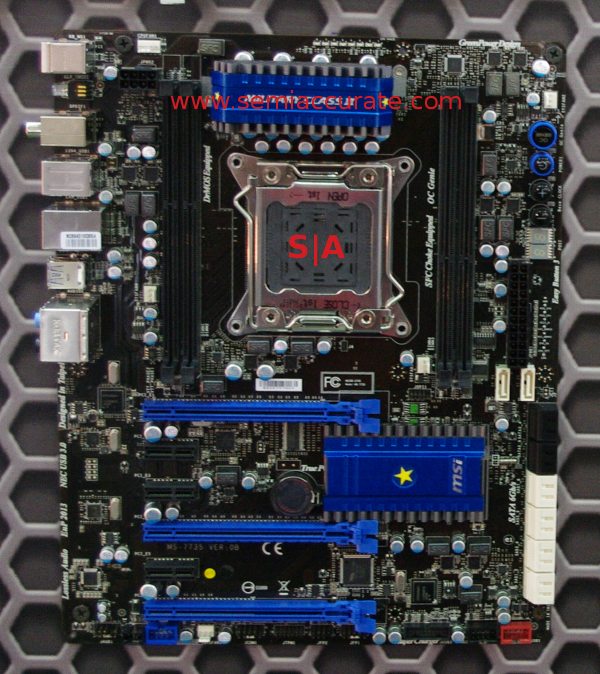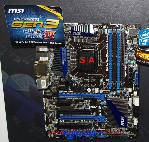 The first thing to note is the Big Bang Marshal that we told you about late last year, the 8 slot Z68 board, is now shipping. Get them while they are hot. We won’t point out how many PCIe lanes the Z68 chipset has, or mention that you might want to wait until their next two boards are out if you want more than a sane number of GPUs in a machine.