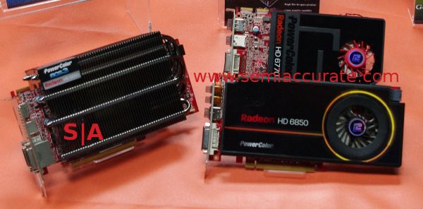 That brings us to two new 6850 designs from the boys (and girls) by the Acer building, a 1 slot and a passive design. I can’t figure out why people would want a one slot 6850/1G, cooling isn’t as good and noise is higher, but apparently there is a lot of demand. You can get one now if you want. You would be a lot better off with the passive 6850 to the left though, it may be more, umm, slotty, but it is definitely less noisy.